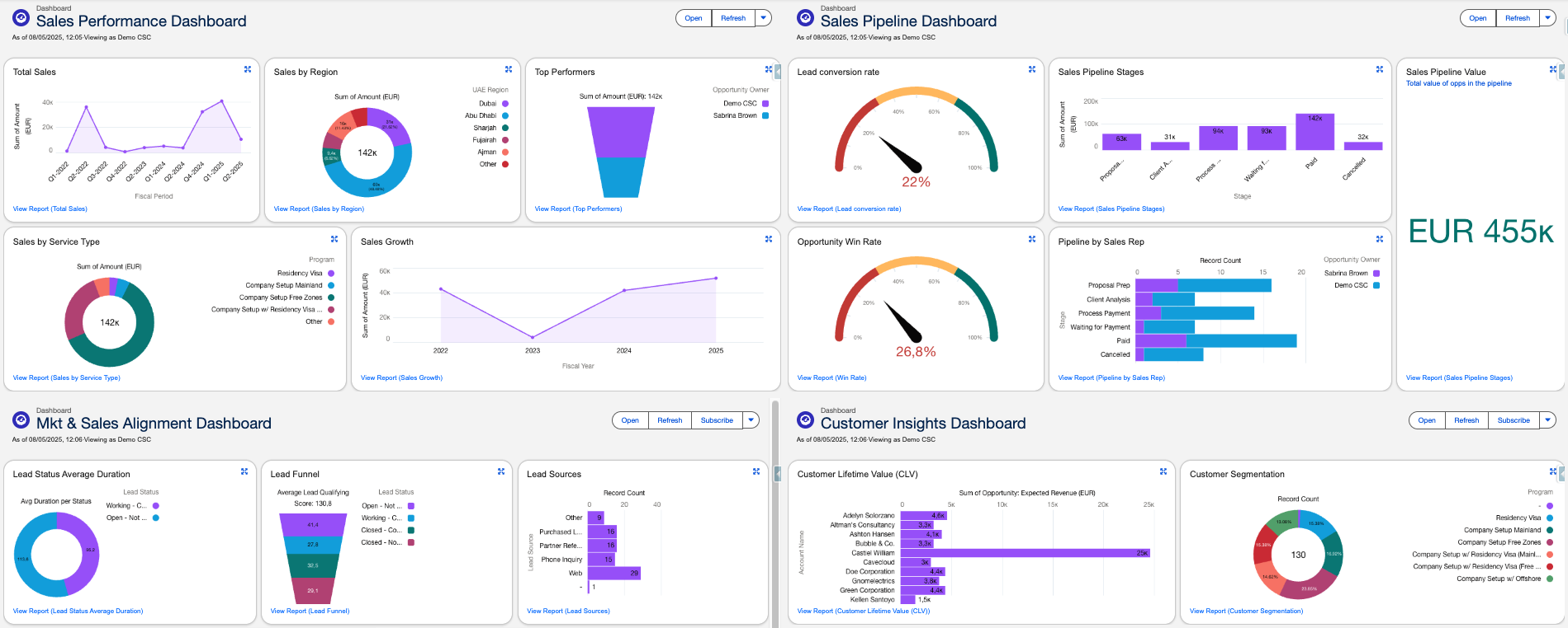 Our platform combines Salesforce's powerful infrastructure with specialized tools for corporate service providers.